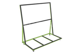 玻璃推車 玻璃推車,是一種跟倉(cāng)儲(chǔ)貨架配套非標(biāo)定制的配套工具,專門用于做玻璃的搬運(yùn)的物流工具。 產(chǎn)品特點(diǎn) 1.噪音小,搬運(yùn)中發(fā)出聲音小 2.有一...